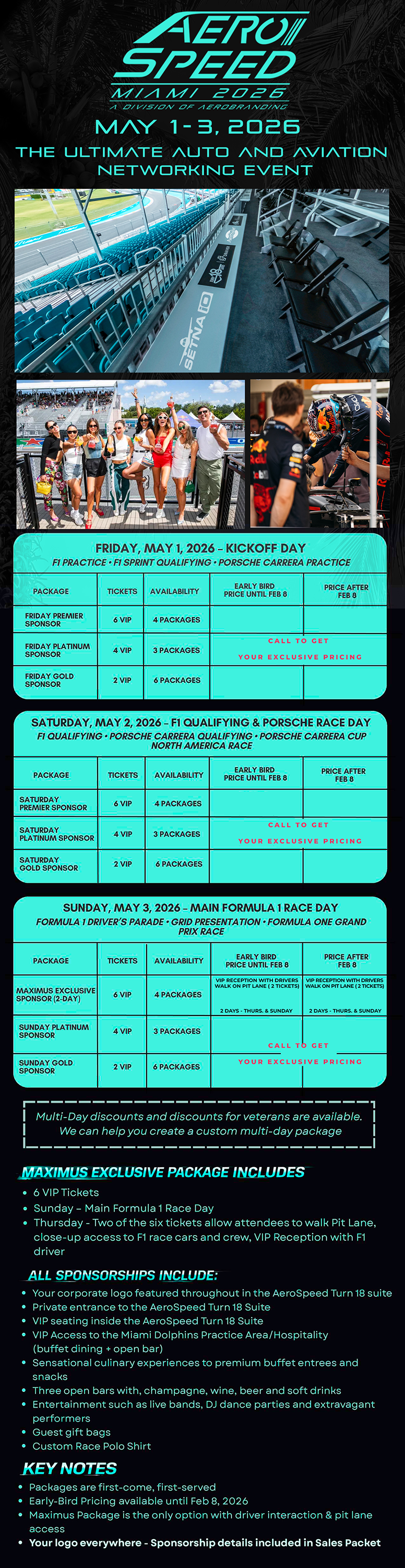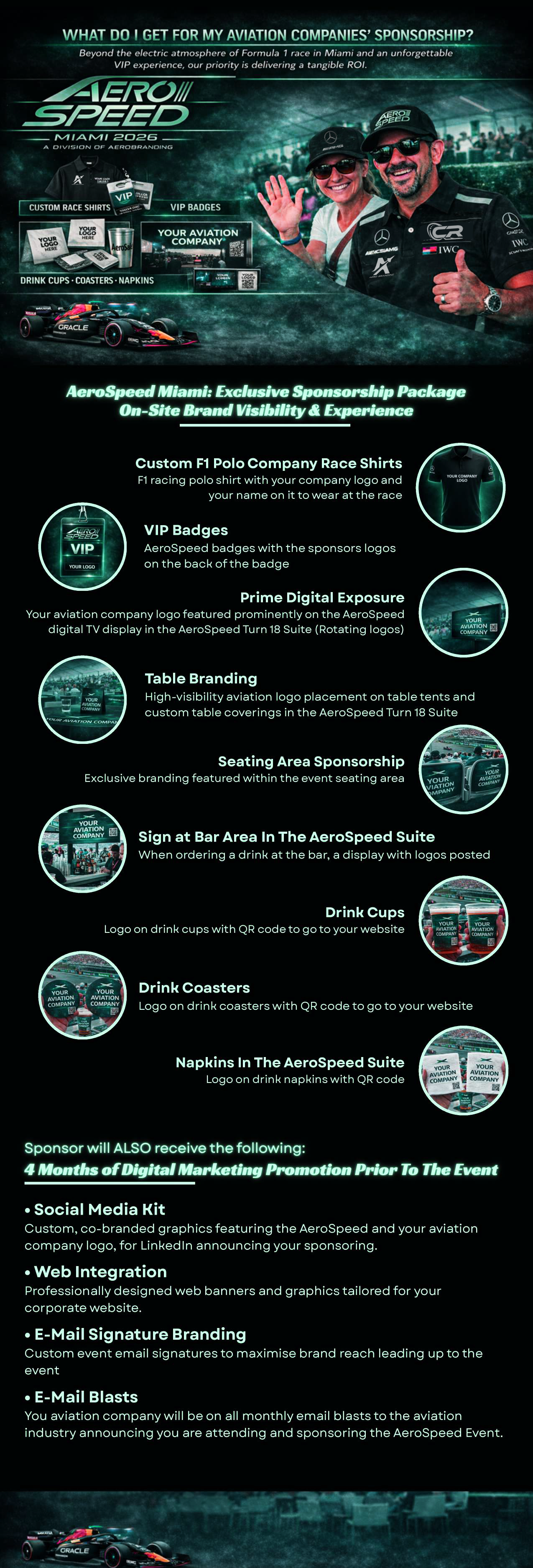 An event at F1 in Miami has NEVER been done to this scale for the aviation community and we are proud to partner with AeroSpeed and cater to the aviation's elite guests.